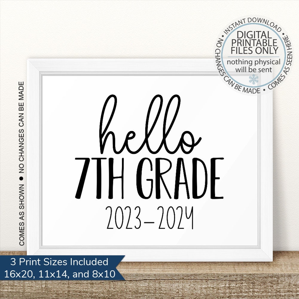 Printable Hello 7th Grade 2023 2024 First Day of School Etsy Sweden